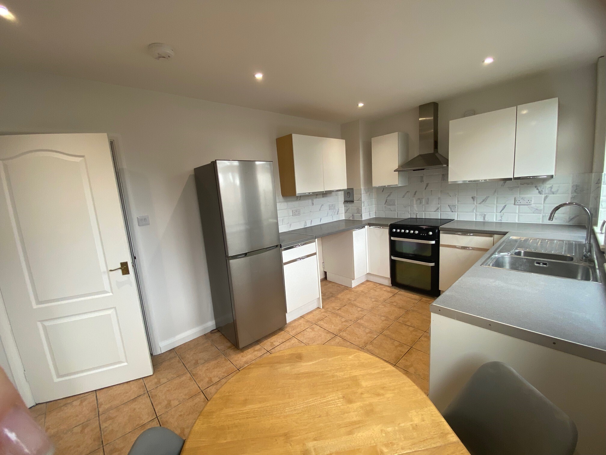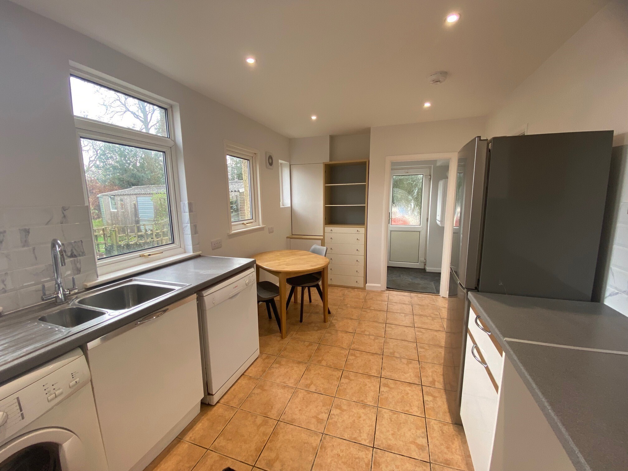 Downstairs there is a lounge to the front with feature slate plinth fireplace feature. A good size kitchen with room for a table and chairs overlooks the garden.