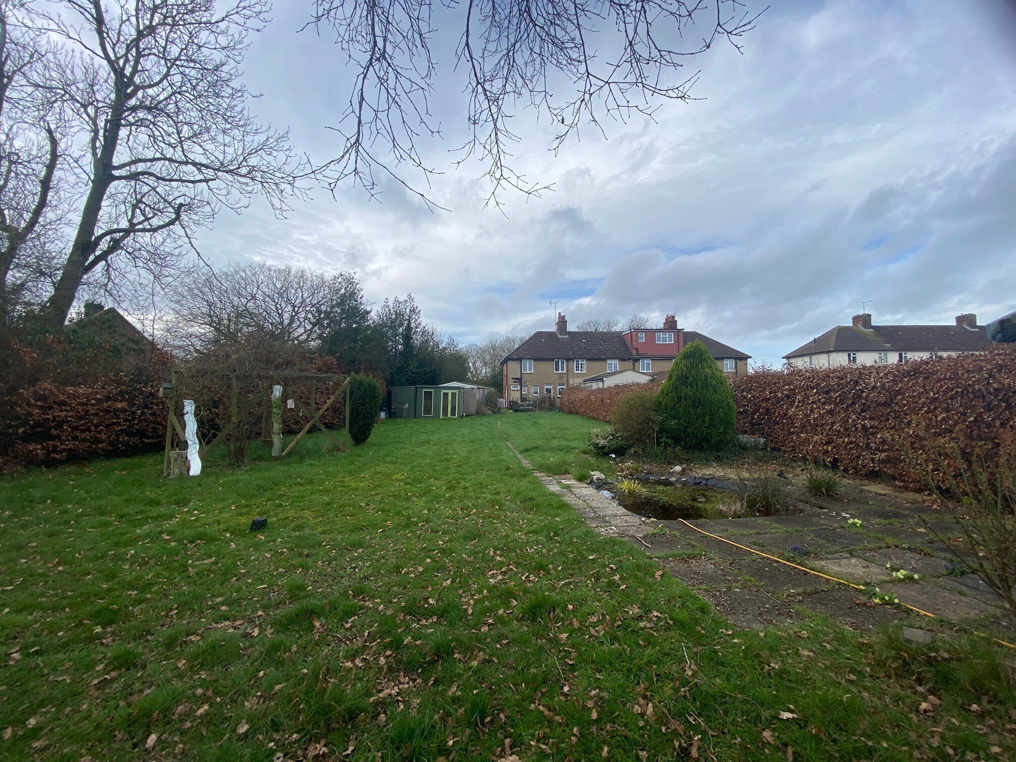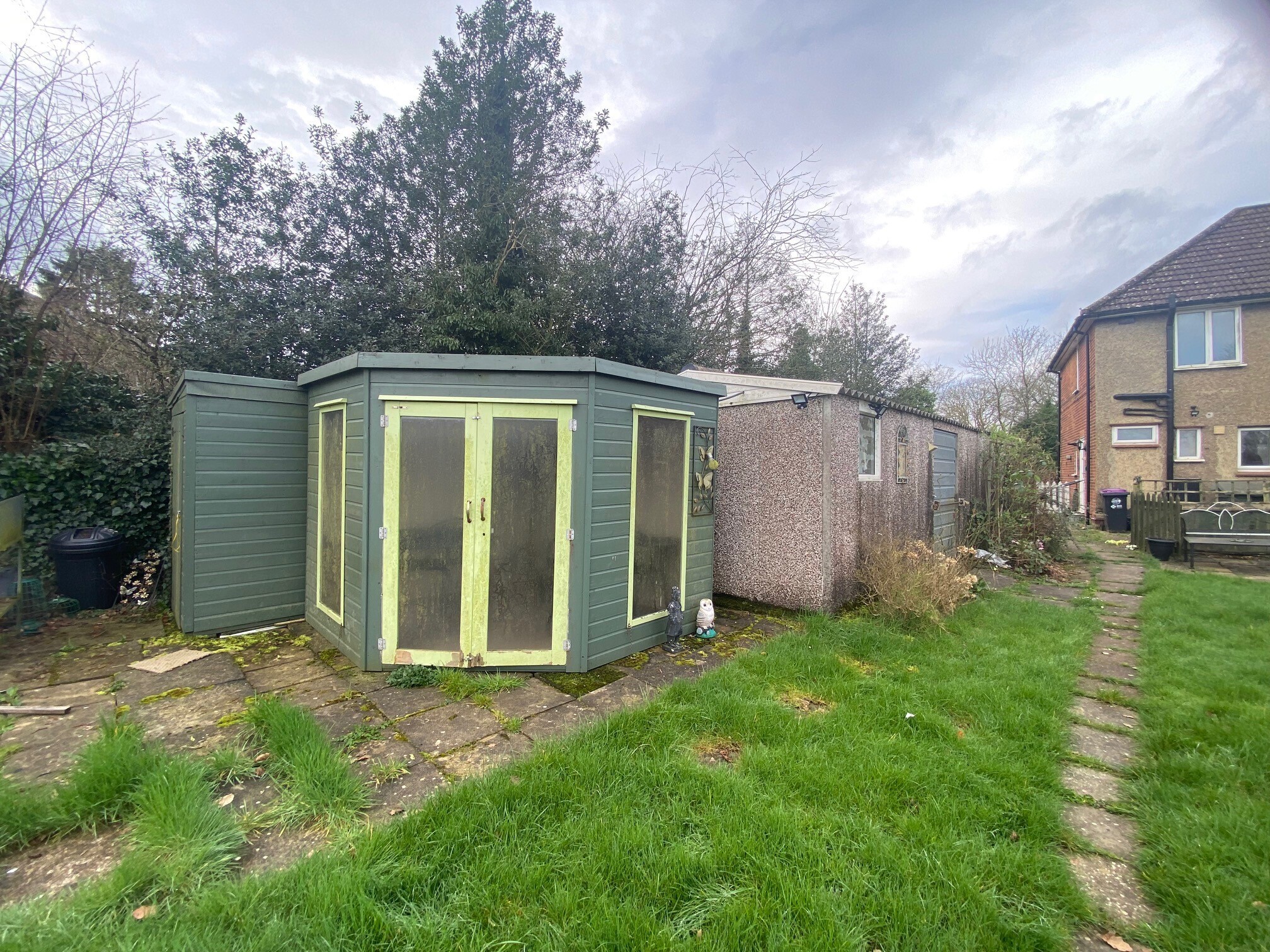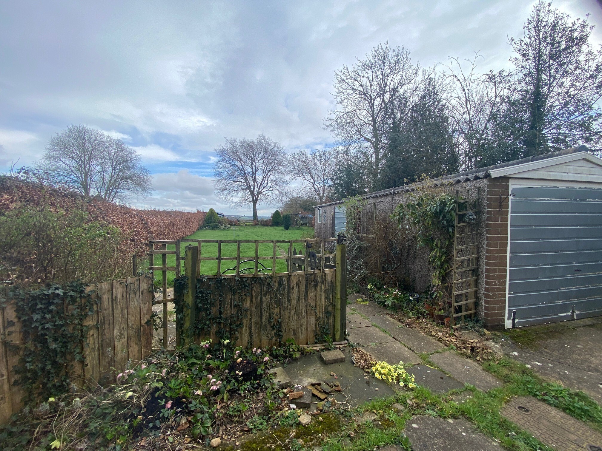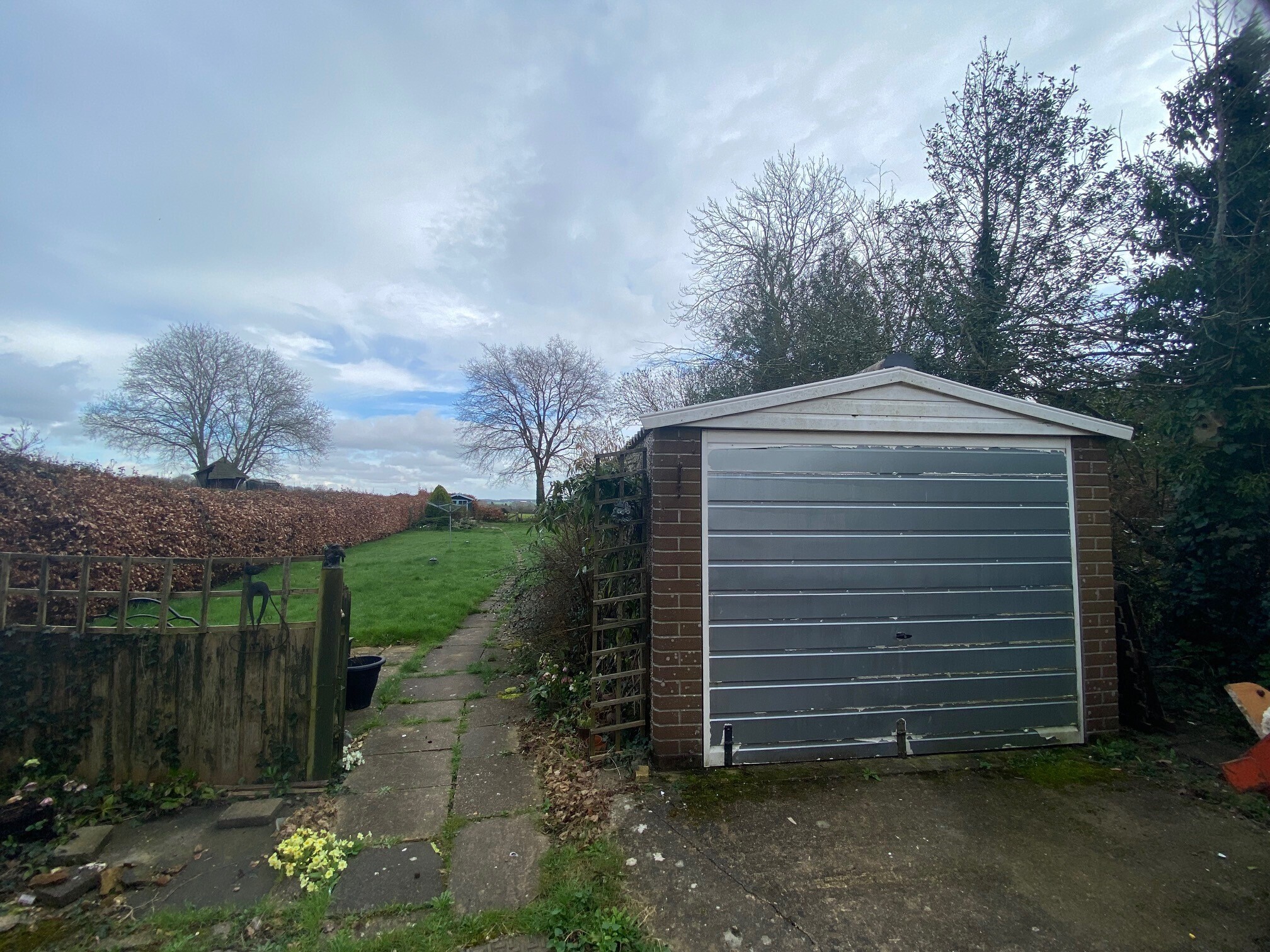 There is a large driveway for several cars to the front and a fantastic rear large garden with outbuildings with views over the countryside.
