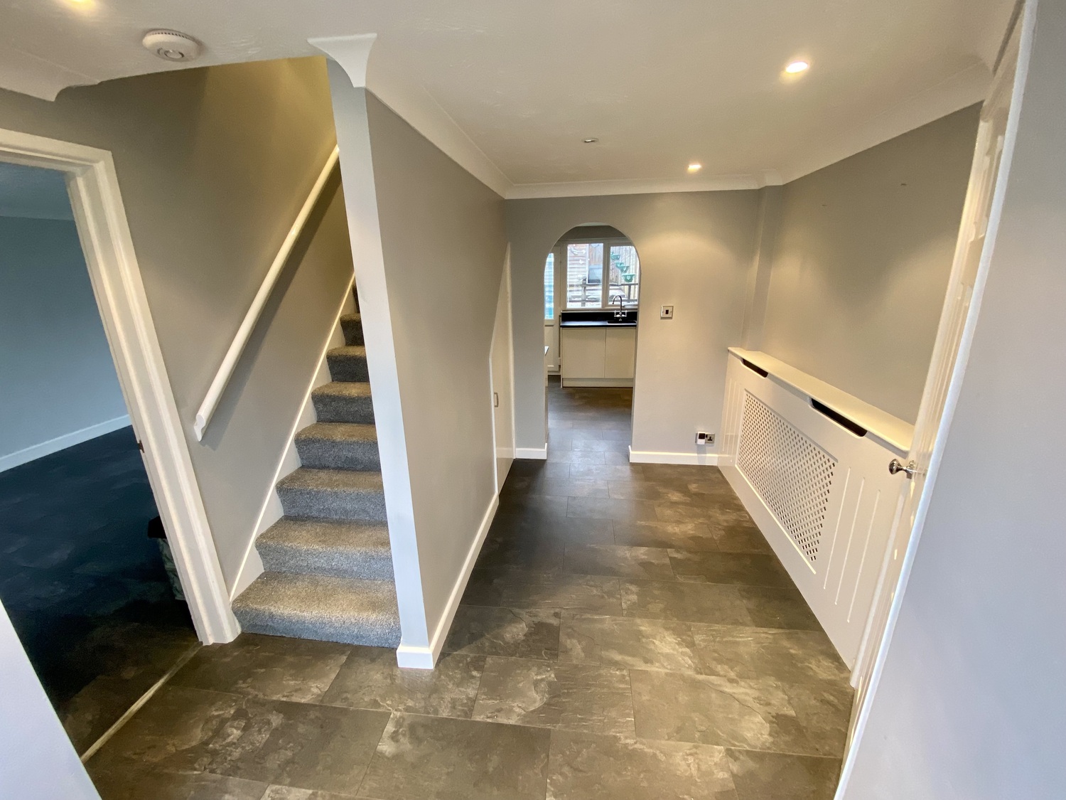 Upon approach to the front there is parking for two vehicles on the driveway. The property benefits from a large entrance which leads you to all aspects of the spacious property, with ample storage.