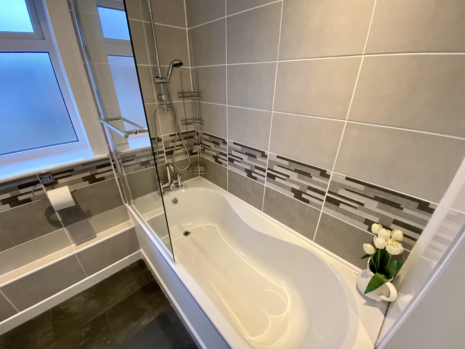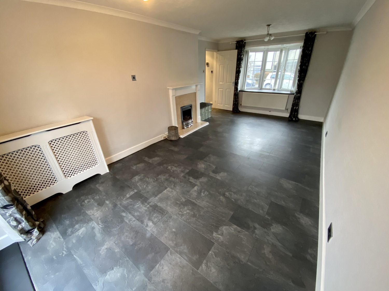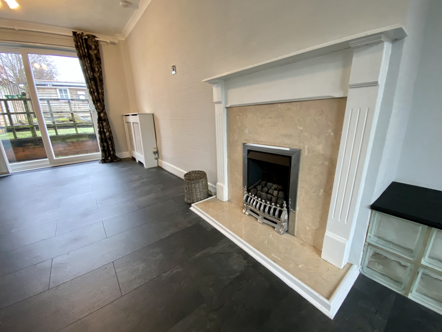 Spanning from front to back of the property, you will find the warm lounge with ornamental fireplace and access to the North facing rear garden. The kitchen has integrated appliances throughout, also worth mentioning quartz worktops and American fridge-freezer.