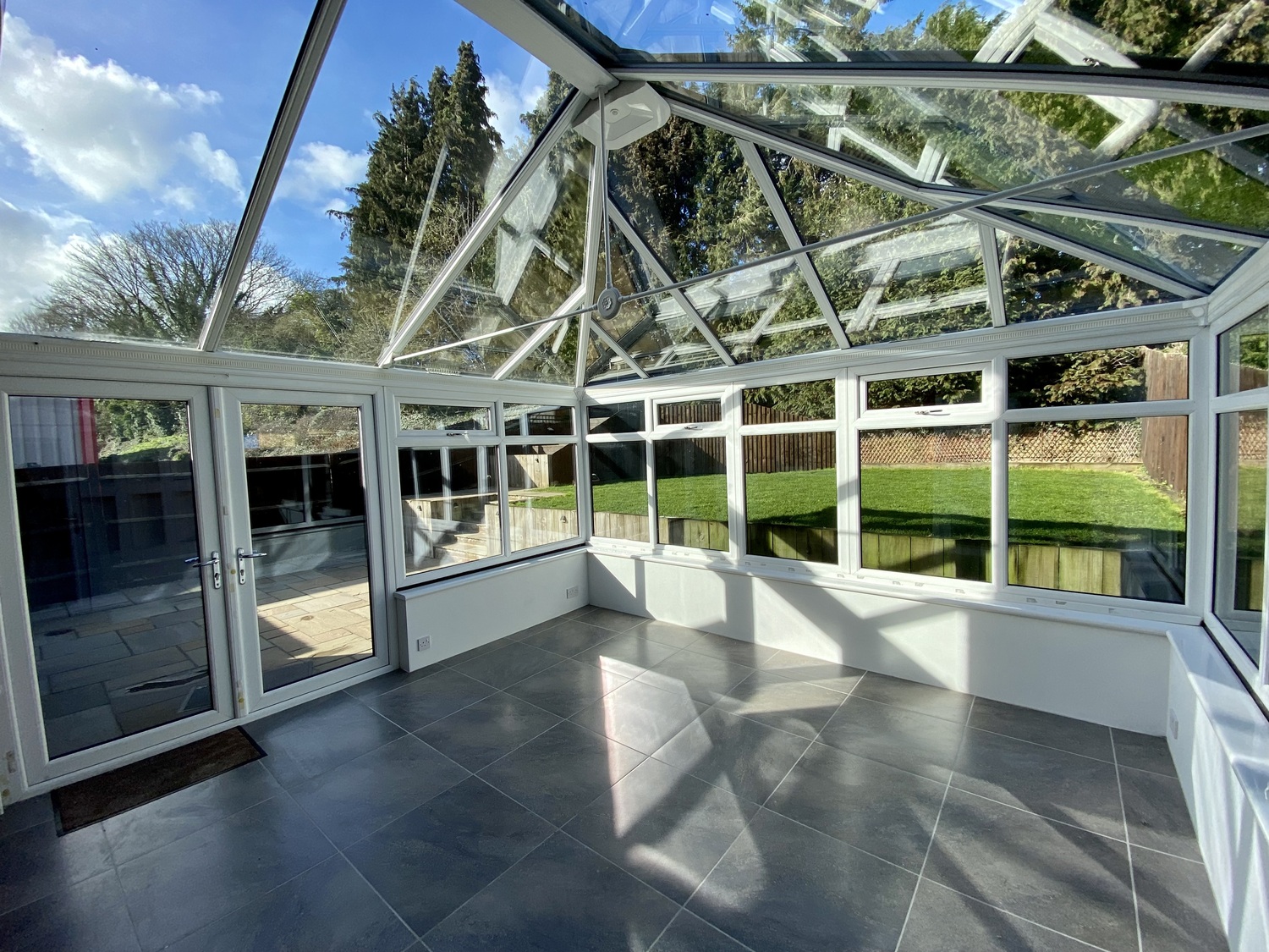 To the rear of the property is a 2nd large reception room which opens on to the garden. This is made up of stone paving and raised grass area. There is an additional garden cabin with power and lighting, ready to suit your needs. The property further benefits from a covered concrete area, running along the side of the property; separated from the formal garden.