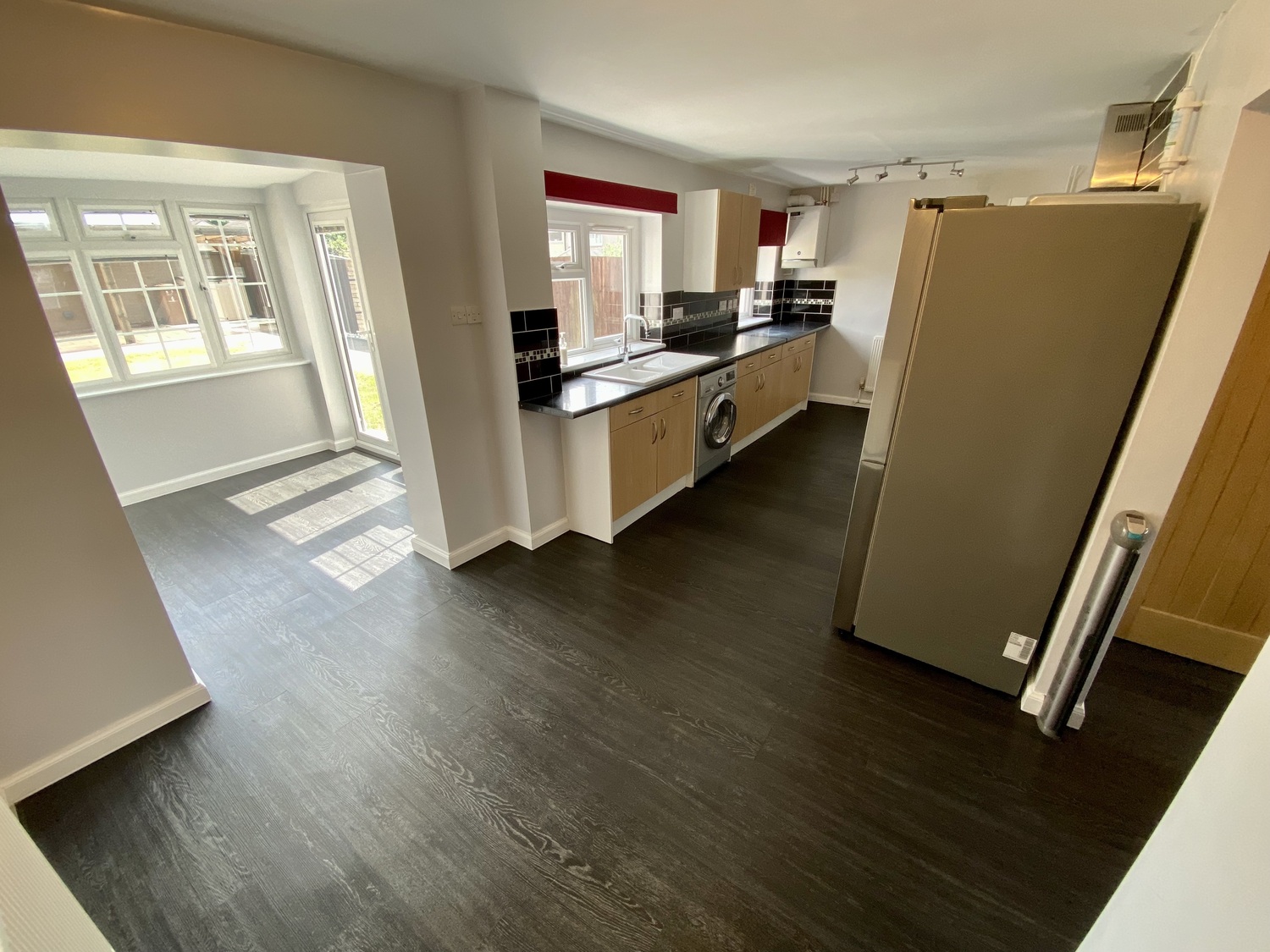 Upon entering the property, you are welcomed by a large hallway leading to the open plan galley kitchen/ dinner, including a large range gas cooker, American style fridge freezer and washer dryer. To the front of the property is a large family reception room and to the rear a cosy 2nd reception which looks out onto the rear garden. The property has been decorated in neutral colours and downstairs has black wood effect flooring throughout.